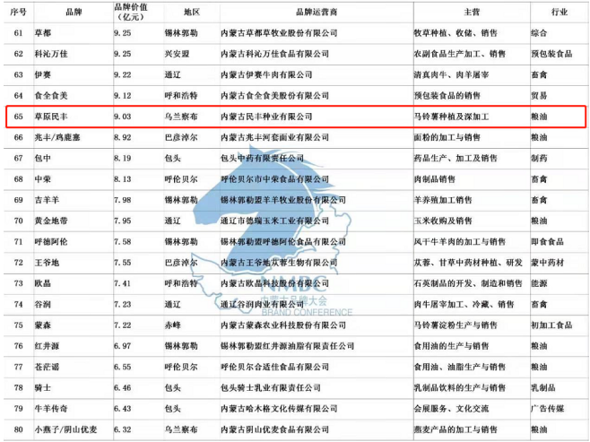 公司注冊(cè)有種薯“草原民豐”、鮮薯“敕勒川”和“塞宜德”、燕麥加工系列“陰山優(yōu)麥”等品牌商標(biāo),其中“草原民豐”2013年被授予“內(nèi)蒙古著名商標(biāo)”,“草原民豐”牌馬鈴薯系列產(chǎn)品2013年被授信為“中國(guó)著名品牌”,并榮獲“第十一屆中國(guó)國(guó)際農(nóng)產(chǎn)品交易會(huì)參展產(chǎn)品金獎(jiǎng)”。公司自主選育的馬鈴薯新品種“民豐紅”,被評(píng)定為內(nèi)蒙古“名優(yōu)特”產(chǎn)品,2010年獲“中國(guó)民營(yíng)科技創(chuàng)新成果金獎(jiǎng)”,2015年正式通過自治區(qū)品種認(rèn)定,同年榮獲“自治區(qū)主席質(zhì)量獎(jiǎng)”榮譽(yù)稱號(hào)。2017 年“民豐種業(yè)、草原民豐、敕勒川、塞宜德、陰山優(yōu)麥”品牌被評(píng)為內(nèi)蒙古農(nóng)畜牧產(chǎn)品市場(chǎng)領(lǐng)先品牌,2018年榮獲“自治區(qū)優(yōu)秀民營(yíng)企業(yè)”稱號(hào),2019年“草原民豐”品牌被評(píng)為“2019年內(nèi)蒙古馬鈴薯產(chǎn)業(yè)行業(yè)標(biāo)志性品牌”,內(nèi)蒙古品牌價(jià)值評(píng)估值9.03億元,在內(nèi)蒙古品牌總榜單排名第65位。2020年在抗擊疫情過程中,被湖北慈善總會(huì)、烏蘭察布紅十字會(huì)、烏蘭察布橋東社區(qū)等多地授予“愛心企業(yè)”稱號(hào)。