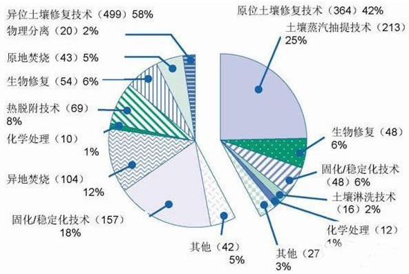 美國超基金場地修復項目技術(shù)使用分布圖